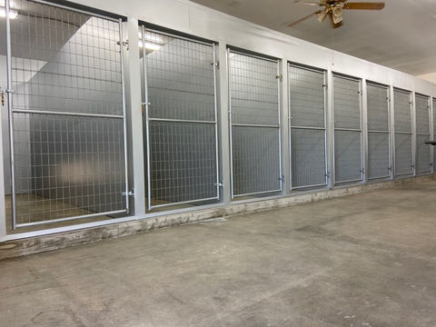 Each kennel has free access to doggie door that leads to 120 square feet exterior run.